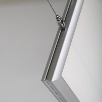 A suitable way to present your messages and posters in spaces where you have no wall mounting possibilities. The frame is suspended from the ceiling via wire cables and the posters can be viewed both from inside and outside. Each frame is packed individually in a cardboard box and each frame includes hanging hooks for suspension.  Each frame is packed individually in a cardboard box and includes hanging hooks for suspension. Ceiling Hanging Kit not included. You can choose the optional ceiling hanging kit below.