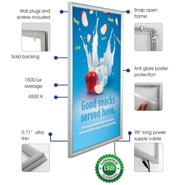 3 reviews for Buy Max LEDbox 16×20 Inch LED Light Snap Poster Frame Silver 1″ Aluminum Profile Front Loading